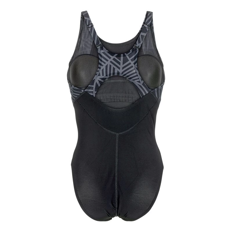 Dieser X-Tra Hold – Full-Bra – Badeanzug aus unserer neuen Kollektion Grey Reflection verfügt über einen sehr sportlichen, komfortablen Trainingsrücken. Ausgestattet mit einem innenliegenden BH und Unterbrustband, garantiert das Modell in der Verbindung mit der zusätzlichen Po-Naht perfekte Passform und maximale Bewegungsfreiheit. Um dir perfekten Halt und Komfort zu garantieren, hat das Modell verstellbare breite Träger. Dieser Einteiler begeistert mit einem außergewöhnlichen Netzmuster in cooler Schwarz-Grau-Farbkombination und macht dich zur Trendsetterin unter den Schwimmnixen.