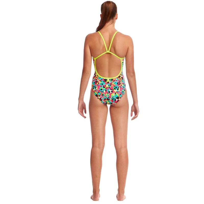 Einteiler mit V-förmigem Rückenausschnitt und schmalen Trägern. Exzellente Strapazierfähigkeit und Bewegungsfreiheit Dank der speziellen Nähtechnik. Mit Paspelierung am Saum als extra Detail. Gesticktes Logo im Rückenbereich.