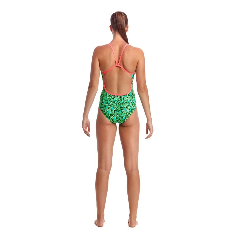 Einteiler mit V-förmigem Rückenausschnitt und schmalen Trägern. Exzellente Strapazierfähigkeit und Bewegungsfreiheit Dank der speziellen Nähtechnik. Mit Paspelierung am Saum als extra Detail. Gesticktes Logo im Rückenbereich.