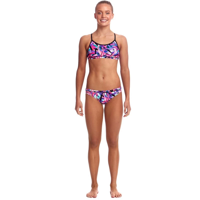 Fest sitzendes Schwimm-Top mit flachem elastischen Bund und schmalen Trägern für einen besseren Tragekomfort für viele Schwimmstunden. Dazu passender Badeslip mit flachem elastischen Bund und Kordelzug. Hergestellt in C-Infinity Qualität, einem farbintensiven, chlorbeständigem Polyestermaterial exklusiv von Funkita und Funky Trunks. Es ist besonders strapazierfähig, schnelltrocknend, elastisch, atmungsaktiv und bietet dabei eine feste Kompression.
